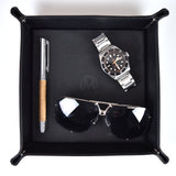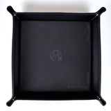 The MONOCHROME Leather Valet Tray is made of the finest black leather and is embossed with our geared-M logo. The tray uses a soft cushioned base so you can safely put down any of your items.